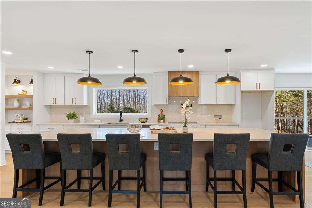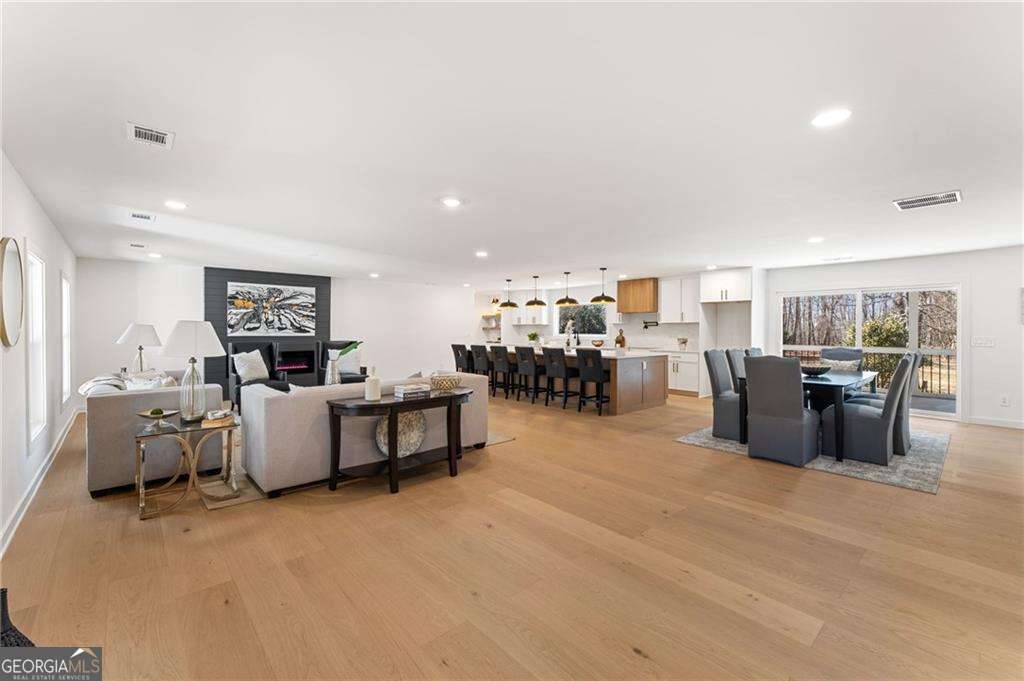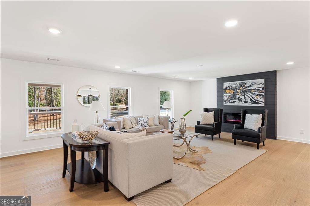 Opportunities like this don't come along often, especially in one of North Atlanta's most coveted location triangles. Perfectly positioned between Woodstock, Roswell, and Milton, this fully renovated four-sided brick ranch sits on 3.88 private acres and delivers the rare combination of space, style, and long-term investment potential. Originally built in 1972 but completely reimagined for modern living, this home offers the aesthetic and experience of 2026 construction with the solid bones you expect from classic craftsmanship. Nearly every major component has been updated, including roof, electrical, plumbing, flooring, paint, kitchen, baths, driveway, and more, creating a true move-in ready HGTV-level finish. Inside, the main level offers effortless one-level living, complemented by a finished terrace level featuring a rec room and dedicated wine cellar. The layout is both functional and inviting, designed for everyday living and entertaining alike. The covered back porch spans the full length of the home, creating an exceptional outdoor living experience with access from both the family room and the primary suite. Step out from the primary bedroom onto this peaceful retreat and enjoy views of the expansive, level acreage. The primary bath delivers a spa-inspired feel, elevating the private suite into a true sanctuary. Outside, the property shines. Set far back from the road for privacy, the land offers: Nearly four usable acres A level yard with excellent pool site potential Extensive parking capacity Freedom from HOA restrictions Room to expand, entertain, store, or simply enjoy breathing space This property is ideal for buyers seeking independence, privacy, and flexibility without sacrificing proximity to premier North Atlanta amenities. If you've been searching for a home that delivers location, land, luxury renovation, and long-term upside, this is the opportunity zone you've been waiting for.