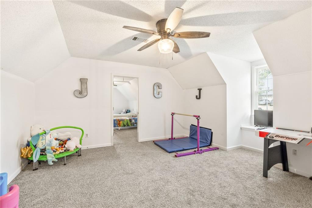 Upstairs, two oversized bedrooms (with built-in play or lounge space!) share a full bath, perfect for kiddos, guests, or your Pinterest-worthy craft room.