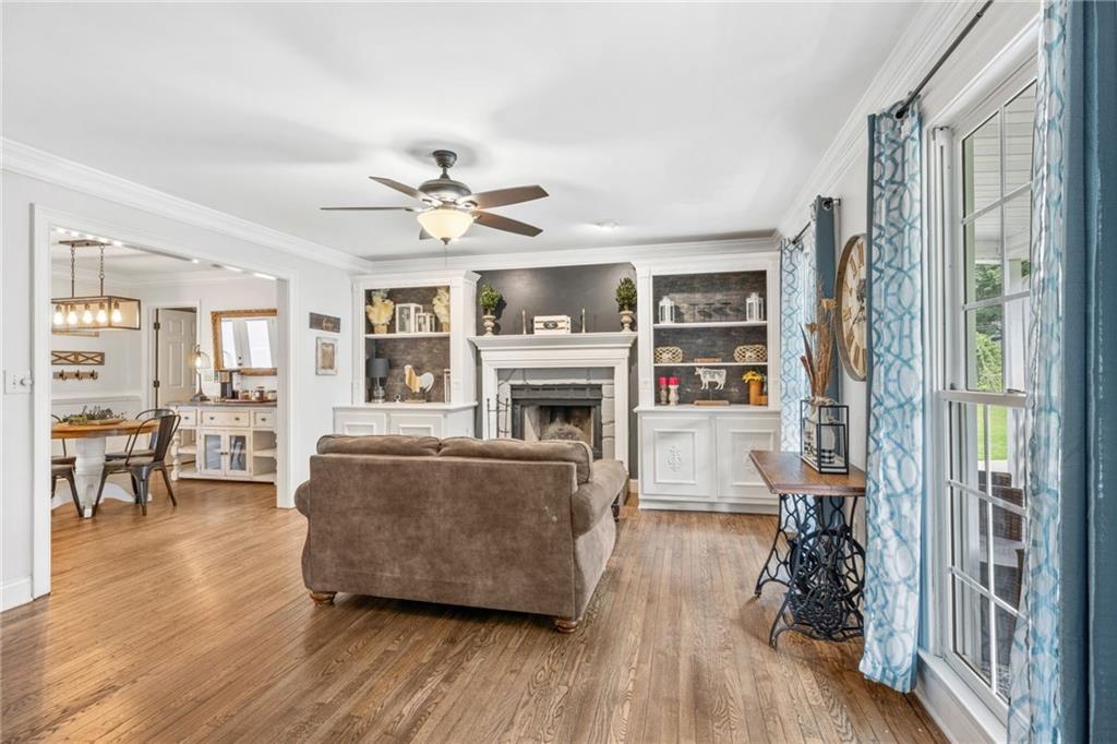 From the moment you step onto the storybook front porch, you'll feel that warm hug of Southern charm. Inside, a cozy living room with a glowing fireplace sets the tone, inviting, comfortable, and oh-so livable.