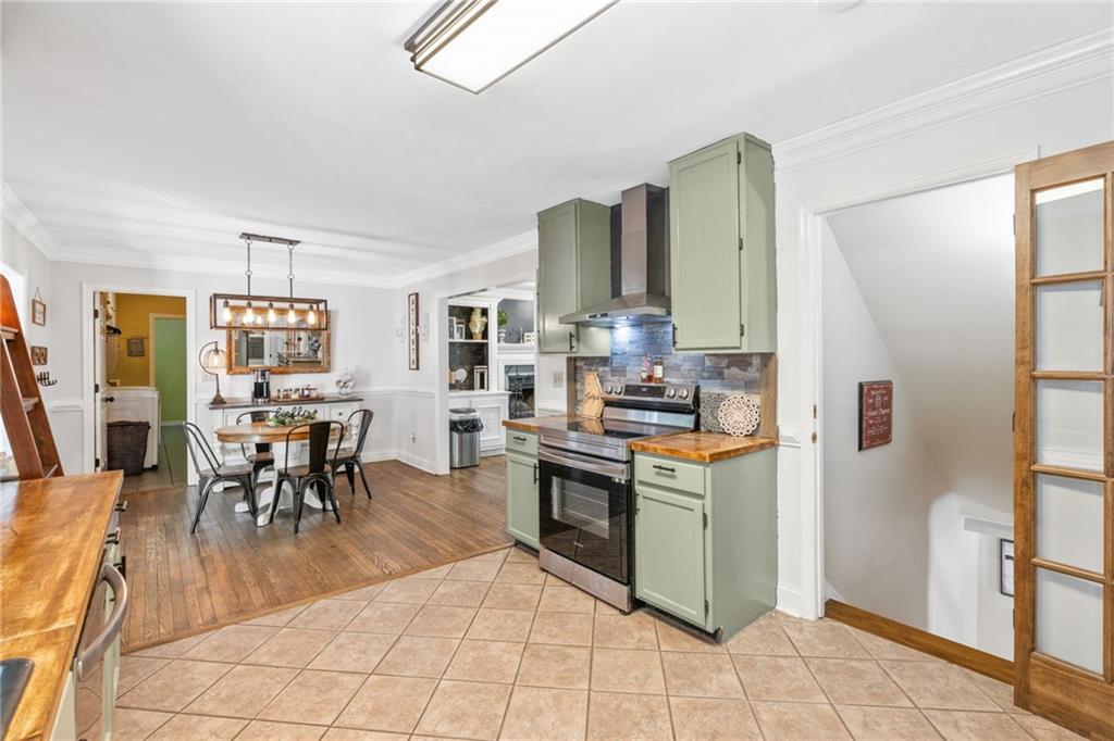 Next up? The heart of the home. The updated kitchen is pure perfection with custom-painted cabinetry, stone countertops, stainless steel appliances, and an eat-in breakfast nook that practically says, "Let's linger a little longer over pancakes."