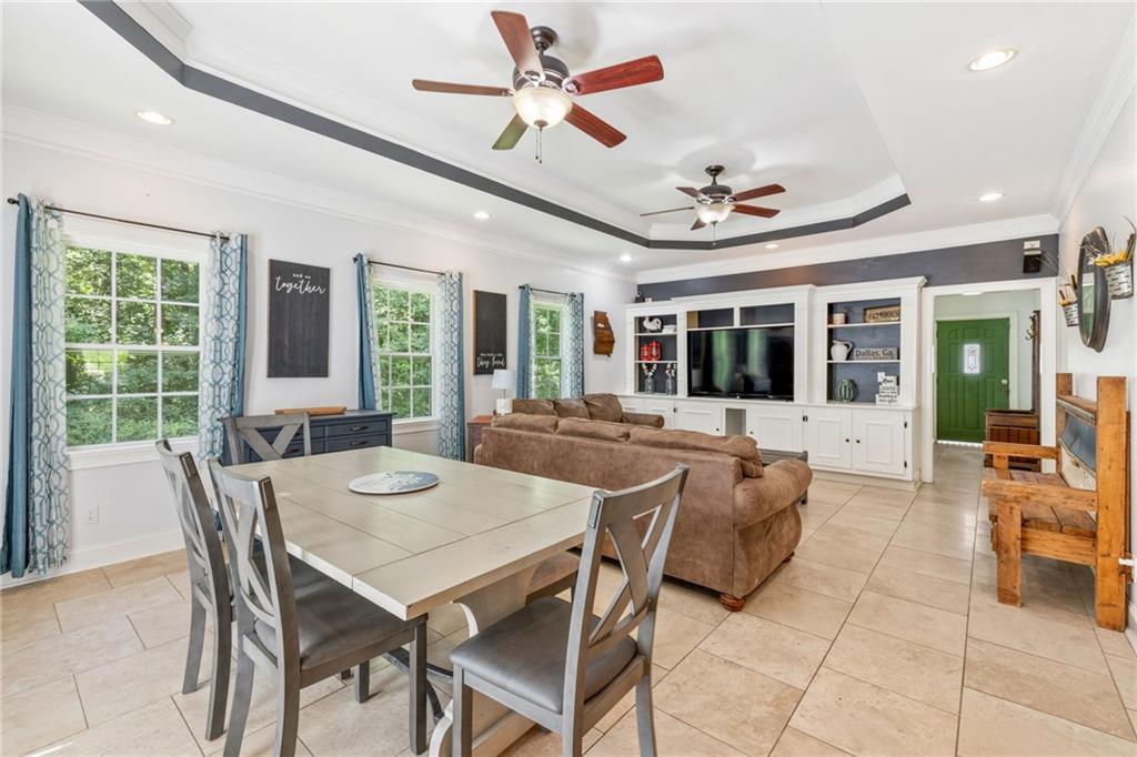 The layout flows seamlessly into a sun-drenched vaulted family room with an open-concept dining area, big enough to host game night and the holidays. Just off the family room, the main-level deck is your go-to for grilling, sipping, or star-gazing under Georgia skies.