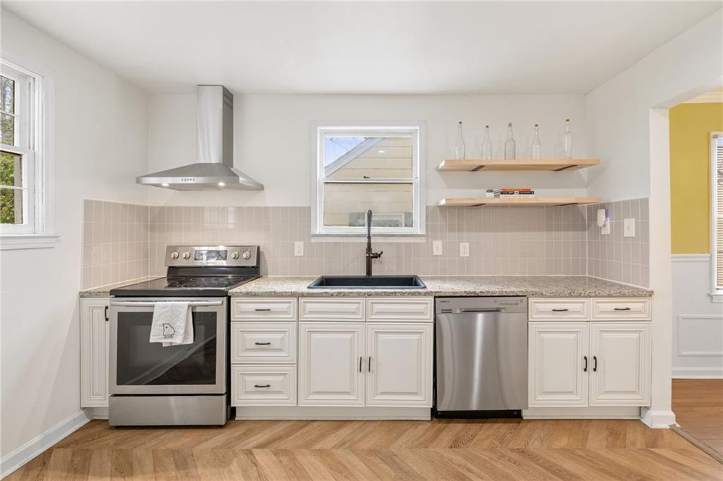 Step inside and you'll find comfortable, connected living spaces designed for everyday life and effortless entertaining. The sun-filled family room flows naturally into the dining area and redesigned kitchen, creating a welcoming hub for gathering with friends or hosting weekend dinners. Original hardwood floors add warmth and timeless charm, while the updated kitchen delivers style and function with stone countertops, stainless steel appliances, and a cleverly tucked-away laundry closet that keeps everything streamlined.