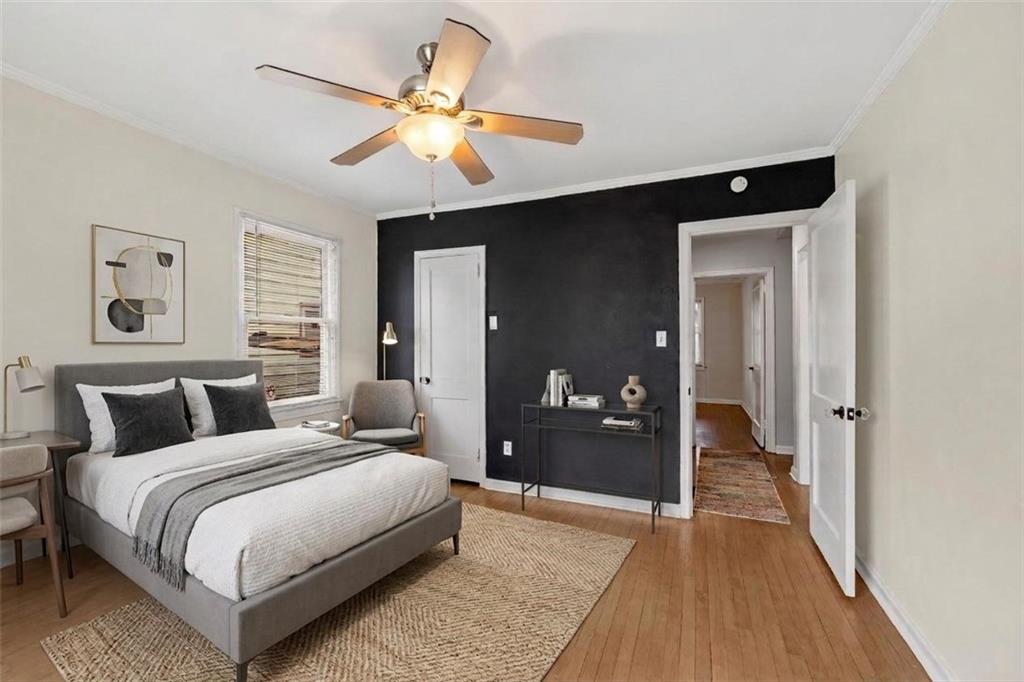 The flexible layout makes this home work for the way people live today. The private upstairs primary suite is tucked into the finished attic and includes a nicely appointed primary bath, creating a quiet retreat away from the main living spaces. On the main level you'll find three additional bedrooms and a beautifully updated guest bath, giving you the freedom to design the home around your lifestyle, whether that means guest rooms, creative studios, or dedicated work-from-home spaces.