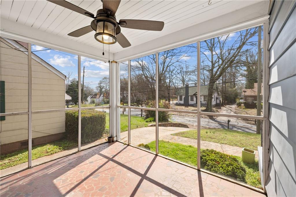 One of the most beloved spaces in the home is the screened porch, where mornings start with coffee and the sounds of birds rustling through Atlanta's canopy of mature oaks. Just off the kitchen, a Georgia granite patio creates the perfect backdrop for grilling, outdoor dinners, or relaxing evenings under the city sky.