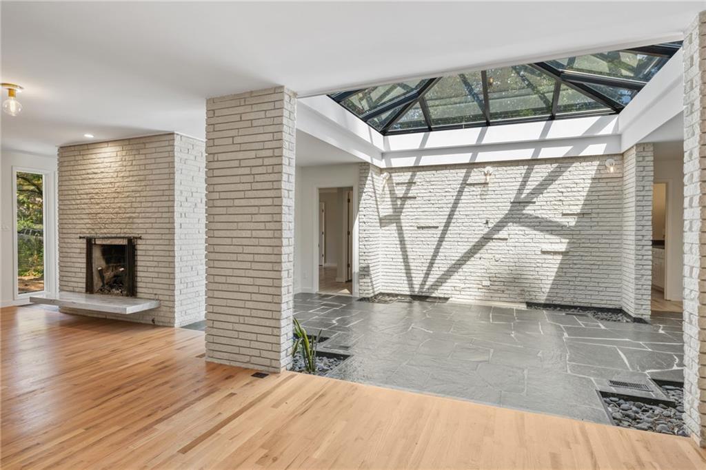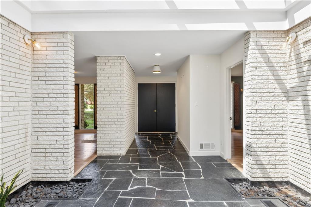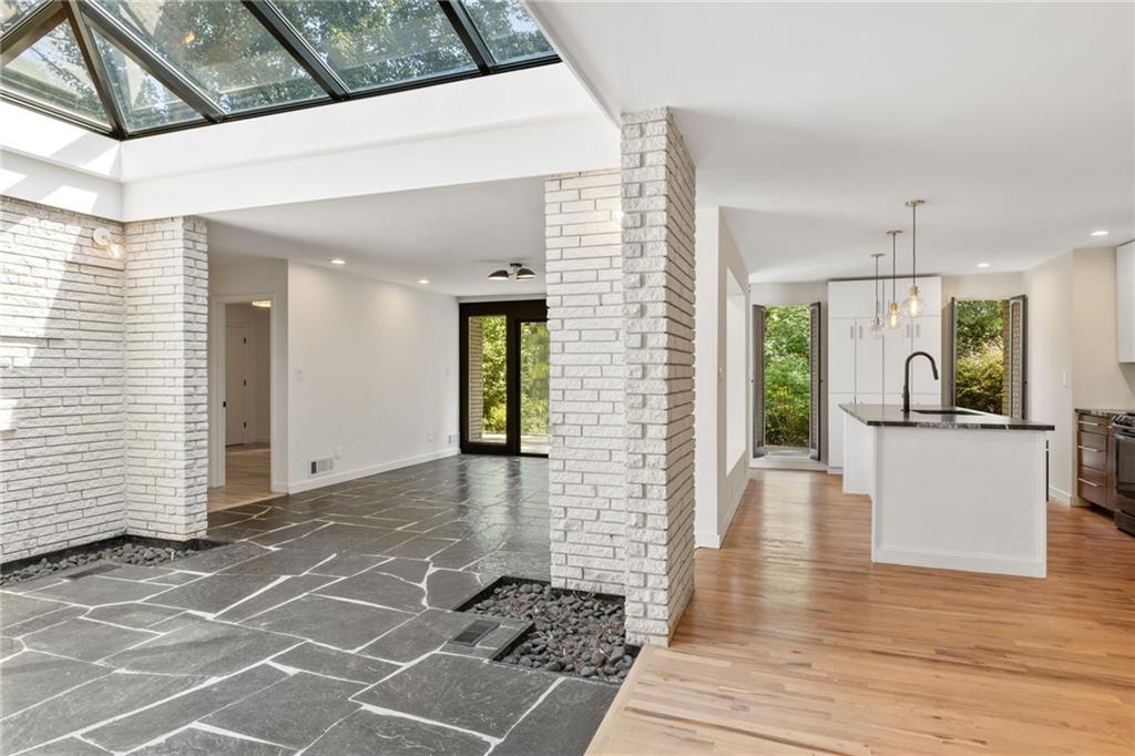 A Rare Mid-Century Modern Masterpiece - Step into living art at 1791 Breckenridge Drive, where architecture and nature move in perfect rhythm. Originally crafted in 1964, this residence bears the unmistakable imprint of Robert Green, the last apprentice of Frank Lloyd Wright and Atlanta's own visionary of mid-century modern design. True to Green's organic philosophy, the home breathes with its surroundings through natural stone, horizontal lines, and walls of glass. At its heart lies a dramatic central atrium, a Green signature, where a soaring glass ceiling pours light into the interiors, casting shifting geometric shadows that change with the day. Framed by natural stone and brick, this striking centerpiece dissolves the boundaries between indoors and out, echoing Wright's enduring influence. While its bones remain authentically mid-century, the home has been reimagined by acclaimed designer Wesley Williams, whose renovations honor Green's intent while layering in modern luxury. Williams' work elevates each space with thoughtful finishes, striking the perfect balance of preservation and reinvention, making the home as livable as it is collectible. Please note: The roof has been replaced within the last 3 years. With three bedrooms, two baths, and more than 2,200 square feet on a lush .60-acre lot, the residence offers serenity just minutes from the city. The living room is anchored by a brick fireplace and accented with Green's signature perforated panels, ornamental details that serve as both window coverings and sculptural design elements. True to its mid-century roots, the home offers two versatile dining and living areas, originally envisioned as a formal dining room and cozy breakfast nook, now reimagined as flexible spaces for entertaining, casual meals, or an inviting conversation area. From these flexible living areas, sliding glass walls open onto the expansive patio, an iconic mid-century gesture that blurs the line between indoor living and the natural landscape and highlighting a private, tree-framed backyard. The primary suite features abundant closet space and a sleek, renovated bathroom with double vanities and a step-down shower, while two additional bedrooms and a hall bath provide privacy and comfort. Nestled in the North Druid Hills Lakeside community, residents enjoy the prestige of the Lakeside school district, leafy established streets, and a neighborhood steeped in mid-century heritage. Opportunities to own a true piece of Atlanta's architectural story, with direct lineage to Frank Lloyd Wright's legacy, are few and far between. Whether you're a design devotee, a history collector, or simply someone searching for a home that feels like art, 1791 Breckenridge delivers an experience unlike any other.