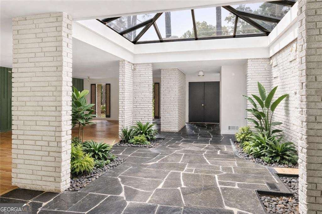 A Rare Mid-Century Modern Masterpiece - Step into living art at 1791 Breckenridge Drive, where architecture and nature move in perfect rhythm. Originally crafted in 1964, this residence bears the unmistakable imprint of Robert Green, the last apprentice of Frank Lloyd Wright and Atlanta's own visionary of mid-century modern design. True to Green's organic philosophy, the home breathes with its surroundings through natural stone, horizontal lines, and walls of glass. At its heart lies a dramatic central atrium, a Green signature, where a soaring glass ceiling pours light into the interiors, casting shifting geometric shadows that change with the day. Framed by natural stone and brick, this striking centerpiece dissolves the boundaries between indoors and out, echoing Wright's enduring influence. While its bones remain authentically mid-century, the home has been reimagined by acclaimed designer Wesley Williams, whose renovations honor Green's intent while layering in modern luxury. Williams' work elevates each space with thoughtful finishes, striking the perfect balance of preservation and reinvention, making the home as livable as it is collectible. Please note: The roof has been replaced within the last 3 years. With three bedrooms, two baths, and more than 2,200 square feet on a lush .60-acre lot, the residence offers serenity just minutes from the city. The living room is anchored by a brick fireplace and accented with Green's signature perforated panels, ornamental details that serve as both window coverings and sculptural design elements. True to its mid-century roots, the home offers two versatile dining and living areas, originally envisioned as a formal dining room and cozy breakfast nook, now reimagined as flexible spaces for entertaining, casual meals, or an inviting conversation area. From these flexible living areas, sliding glass walls open onto the expansive patio, an iconic mid-century gesture that blurs the line between indoor living and the natural landscape and highlighting a private, tree-framed backyard. The primary suite features abundant closet space and a sleek, renovated bathroom with double vanities and a step-down shower, while two additional bedrooms and a hall bath provide privacy and comfort. Nestled in the North Druid Hills Lakeside community, residents enjoy the prestige of the Lakeside school district, leafy established streets, and a neighborhood steeped in mid-century heritage. Opportunities to own a true piece of Atlanta's architectural story, with direct lineage to Frank Lloyd Wright's legacy, are few and far between. Whether you're a design devotee, a history collector, or simply someone searching for a home that feels like art, 1791 Breckenridge delivers an experience unlike any other.