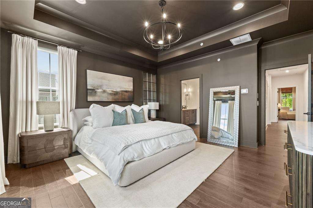 There are homes that check boxes... and then there are homes that check every lifestyle desire. This one is the latter. From the moment you walk up, the double front porches set the stage for a life of effortless elegance. Picture yourself starting the day with coffee in hand, overlooking the courtyard as the neighborhood wakes up. In the evening, a glass of wine upstairs on the primary porch as the city lights twinkle in the distance. Inside, sunlight dances across wide blonde hardwoods, elevating a palette of quartz, champagne fixtures, and custom lighting that feels more boutique hotel than suburban townhome. The open-concept kitchen, dining, and living space flow together seamlessly, making entertaining as natural as breathing. Upstairs, the primary suite is a sanctuary with a closet so generous it whispers promises of never fighting for hanger space again. Guests are equally cared for with spacious secondary bedrooms, while the finished terrace suite flexes into the perfect office, gym, or weekend retreat. This isn't just square footage. This is freedom with finesse, an end-unit with unmatched width, thoughtful separation, and a future-proofed elevator shaft that makes "forever home" more than a possibility. And then there's the location. Nestled between Avalon and Downtown Alpharetta, you'll never choose between a five-star dinner or a boutique shopping spree, you'll simply decide which direction to walk. For the empty nester or single with sophistication, the executive seeking low-maintenance luxury, or the buyer who refuses to compromise on style, this townhome is more than a place to live. It's a statement.