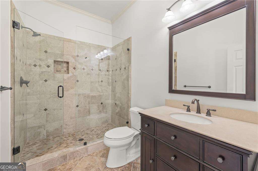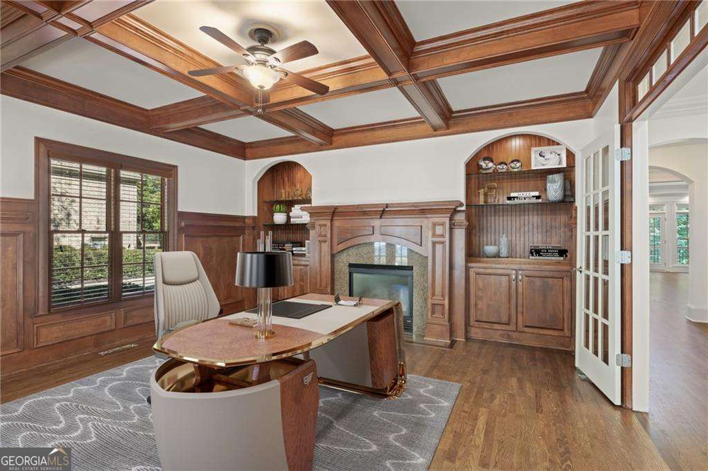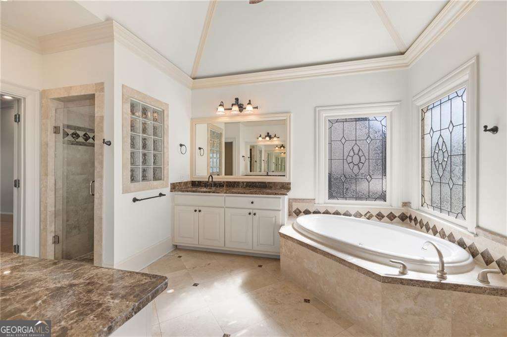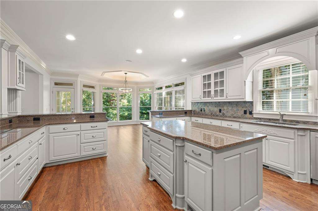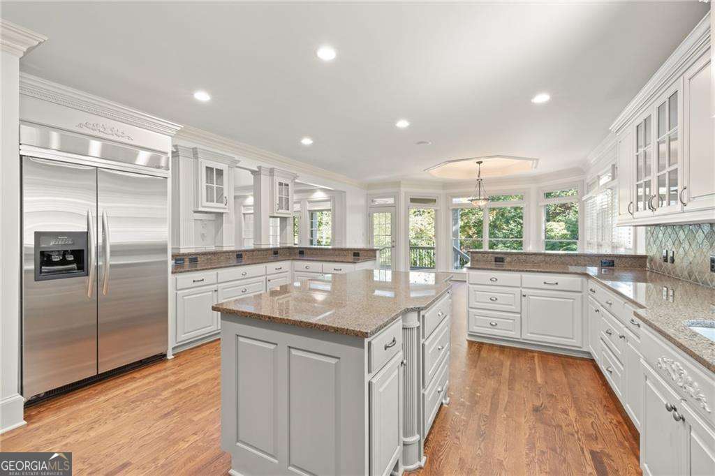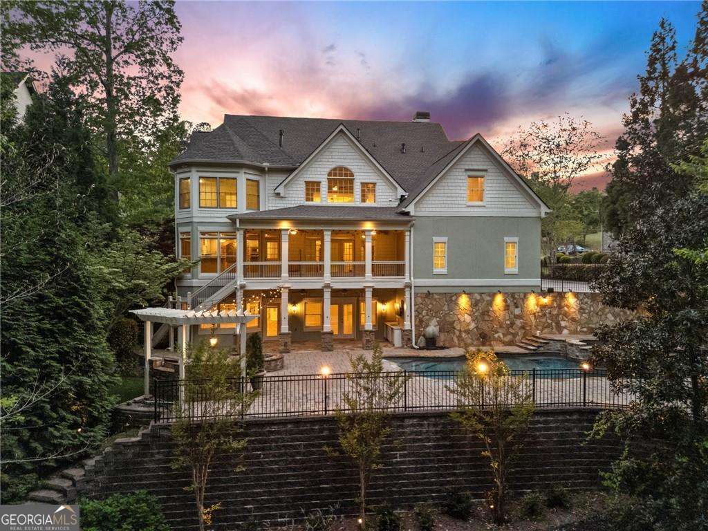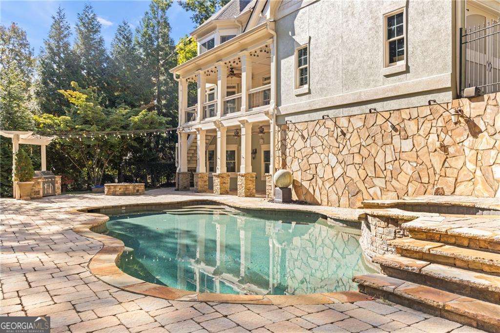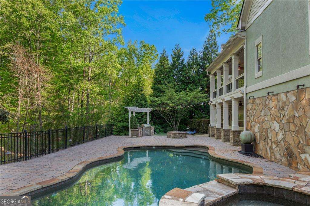 Welcome to 2480 Flint Creek Drive, an exquisite estate nestled in the prestigious Creekstone Estates community in Cumming, Georgia. This meticulously crafted 7,645-square-foot home sits on nearly an acre, offering five bedrooms, six bathrooms, and an ideal layout for multi-generational living. Upon entry, the grand staircase makes a striking impression, complemented by onsite milled trim moldings and elegant architectural details throughout. The home has been freshly updated with new interior paint throughout and beautifully sanded and stained hardwood floors, enhancing its timeless appeal. The gourmet chef's kitchen on the main level boasts high-end appliances, granite countertops, and painted custom cabinetry, while a secondary kitchen in the fully finished basement provides convenience for extended family stays or entertaining. The expansive living areas feature hardwood floors, coffered ceilings, and abundant natural light, creating a warm yet sophisticated ambiance. The luxurious primary suite serves as a private retreat, offering a revamped spa-like bath and oversized walk-in closets. Outdoor living is elevated with a resort-style pool, fully equipped outdoor kitchen, and covered porches, perfect for hosting or unwinding in tranquility. Located in the highly sought-after Forsyth County School District, this home aligns with families prioritizing top-tier education. Creekstone Estates itself enhances the lifestyle with clubhouse amenities, tennis courts, a swimming pool, playgrounds, walking trails, and a 45-acre stocked private lake. Recent sales affirm the area's desirability and strong market value. With its blend of luxury, function, and community, 2480 Flint Creek Drive is more than a home-it's an opportunity to embrace a refined lifestyle in one of Forsyth's premier neighborhoods.