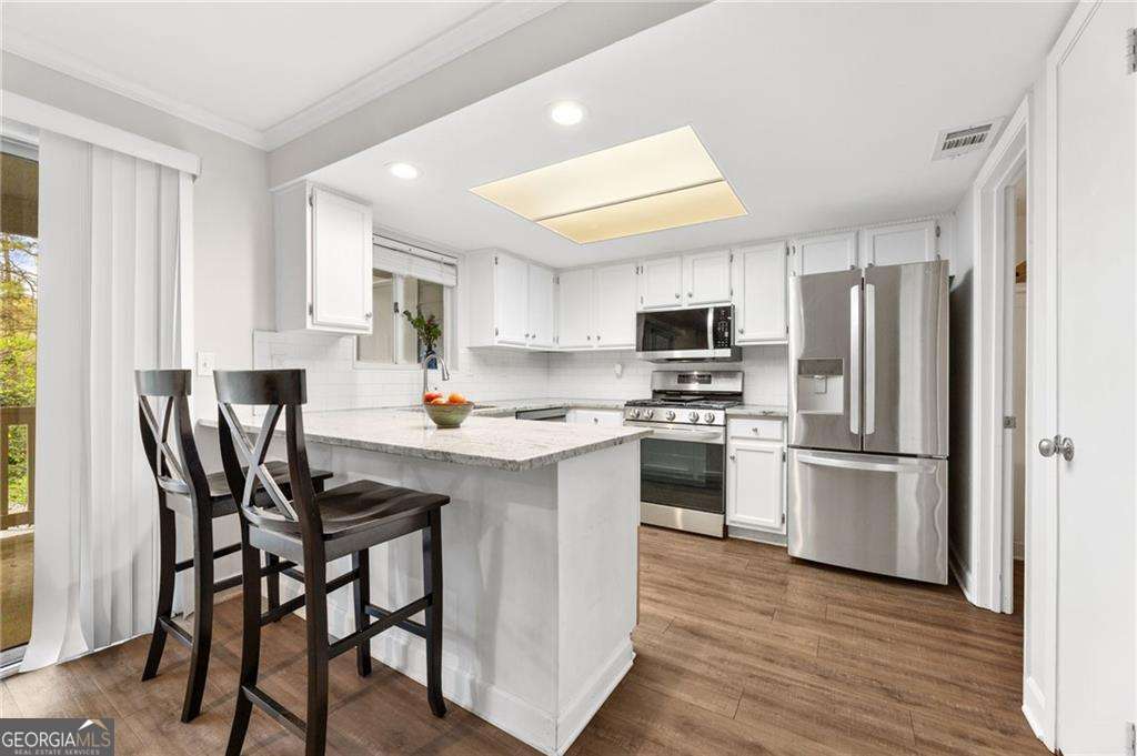 Smyrna's Best Kept Secret... and the Smartest Move You'll Make. Let me tell you something... buying your first home is not just about square footage... it's about where your life happens. And this one? It puts you right in the center of it all.Tucked inside the beautifully kept Hillsdale community, this updated 2-bedroom, 2-bath top-floor condo delivers the perfect blend of low-maintenance living and high-energy location. You're minutes to The Battery, Smyrna Market Village, Cumberland Mall, parks, restaurants, and everything that makes Smyrna one of the most desirable places to live right now. Inside, it's clean, elevated, and move-in ready... because let's be honest, nobody wants a "project" for their first home.Open-concept living and dining that actually feels open.Accent fireplace that anchors the space with just the right amount of charm. Updated lighting and hardwood-style flooring that keeps it feeling fresh, not dated. A spacious primary suite with dual closets... because one is never enough. Private en-suite bath so you're not sharing space unless you want to. Secondary bedroom with a walk-in closet... perfect for a roommate, guest room, or your home office era. And then there's the everyday ease...Dedicated laundry room with washer and dryer. Private balcony for morning coffee or evening wine. Extra storage, because life comes with stuff. Now let's talk lifestyle...This is a community that's actually taken care of... pool, tennis courts, clubhouse... the kind of place where you feel proud pulling in. And the location? It's not just convenient... it's strategic. With quick access to I-75 and I-285, you're connected to everything Atlanta has to offer... without feeling like you're stuck in it.