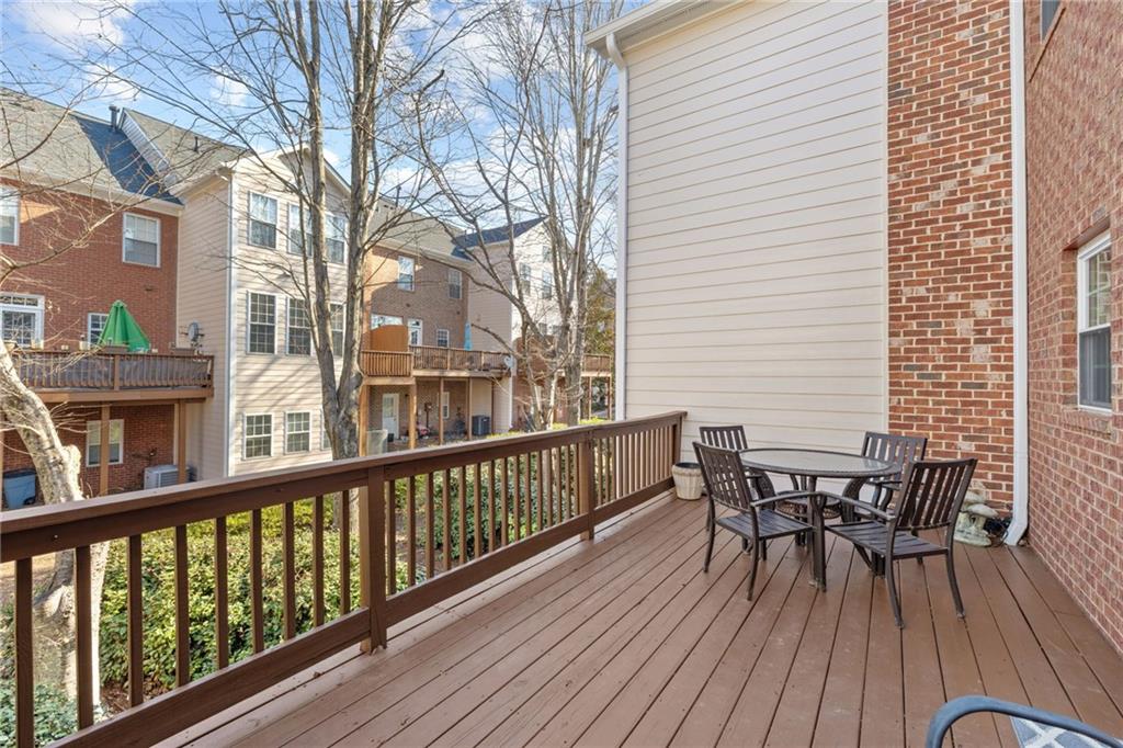 Welcome to The Heritage at Roswell, where comfort, convenience, and community come together in one of the area's most desirable neighborhoods. This move-in ready three-story townhome has been meticulously maintained, with no detail overlooked. Fresh interior paint, new stone counters, and an updated backsplash set the tone for a home that is polished and ready for its next chapter. Step inside from the charming front entry or directly from the garage into the spacious terrace level, featuring an oversized third bedroom suite. Whether you need guest space, a home office, man cave, teen retreat, or something uniquely yours, this level adapts to your lifestyle. The main level welcomes you with a warm and inviting family room, where a gas fireplace anchors the elegant great room. Custom built-ins provide the perfect place to showcase your treasures or keep everything neatly tucked away. A stylish powder room sits nearby and flows seamlessly into the dining area, creating a layout designed for everyday living and easy entertaining. At the heart of the home is the expansive kitchen, thoughtfully designed with espresso cabinetry, stone counters, and a sunny eat-in area. Just off the kitchen, enjoy morning coffee or evening unwinding on the private deck, ideal for relaxing or hosting friends. Upstairs, the upper level is your private retreat. The primary suite offers an oversized walk-in closet and a spa-inspired ensuite complete with double vanities, soaking tub, glass-enclosed shower, and private water closet. The secondary bedroom features its own ensuite and closet, ensuring comfort and privacy for everyone. The conveniently located laundry room completes the home's practical and functional layout. All of this is nestled within a beautifully maintained gated community in a coveted Roswell location offering exceptional amenities including a clubhouse, fitness center, swimming pool, lap pool, tennis courts, walking trails, and a serene pond. Ideally situated near downtown Roswell and the vibrant energy of Canton Street, you will enjoy easy access to parks, live music, shopping, and local favorites like Table & Main, 1920 Tavern, and Silla del Toro, just to name a few. You are also minutes from the Chattahoochee River National Recreation Area and only eight minutes from GA-400. This home truly delivers the lifestyle buyers are looking for. Do not miss your opportunity to experience the best of Roswell living.