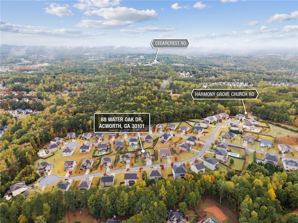 4 Bedrooms | 2.5 Baths | ~3,000 Sq Ft | Upgraded to Perfection! If you think you've seen a typical suburban four-bedroom, think again... because this one is in a league of its own. Every inch of this Harmony Hills showplace has been thoughtfully designed, customized, and elevated to create a home that blends high style with high function. Step inside to discover spaces that surprise and delight at every turn. What was once a formal living room is now a designer home office with built-in cabinetry, custom lighting, rich wood flooring, and sunlight pouring through every window. The traditional dining room? Reimagined as a private, gym-quality workout studio with high-end equipment, sophisticated barn doors, and room to move, a flexible space that could easily become a playroom, media room, or creative studio. The open-concept kitchen, dining, and family room is the heart of the home, featuring custom cabinetry, stone countertops, a designer backsplash, breakfast island, and walk-in pantry. The dining area is perfectly placed for a round table that seats six to eight, with French doors leading to a covered patio and a backyard built for entertaining. The family room's reclaimed-wood accent wall and corner fireplace set the tone for cozy evenings and easy conversation. Upstairs, the primary suite is a retreat with a tray ceiling, wood flooring, custom lighting, and an accent wall that adds warmth and sophistication. The spa-style bath includes an oversized double vanity, abundant cabinetry, separate soaking tub and shower, and a massive walk-in closet. Three additional bedrooms and a spacious laundry room round out the upper level. Outside, enjoy a private backyard oasis with an extended patio, covered spa area, pea-gravel play zone, and expanded driveway. Every outdoor space has been planned for real living, relaxing, entertaining, and making memories. This home offers nine-foot ceilings on both levels, meticulous upgrades throughout, and a location that can't be beat, just minutes from top schools, Seven Hills, and with easy access to the Galleria, Midtown, and Hartsfield-Jackson Airport, all while benefiting from low Paulding County taxes. 88 Water Oak Drive isn't just a house, it's a statement. A celebration of thoughtful design, daily comfort, and a life beautifully lived.